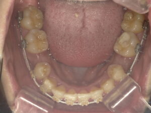 ワイヤーのサイズを上げ、前歯を揃えるのと後ろに少し引いていきます。