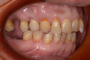 右側でも食事できるよう、インプラントまたは難しい場合は入れ歯での噛み合わせの再構成を計画していきました。