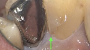 歯ぐきが下がっており、本来歯ぐきの中に隠れている根元が表面に見えています。