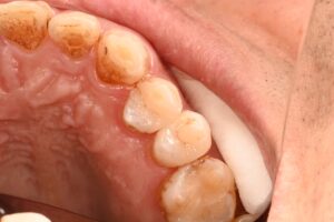 特に黒く見える部分の銀歯は金属の酸化による色の変化のため、かなり古いものだと考えられます。