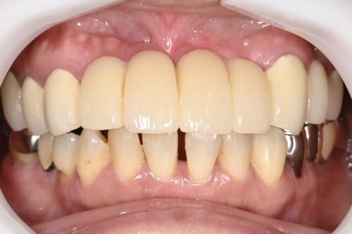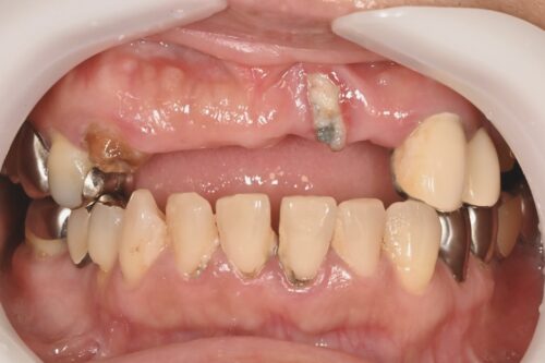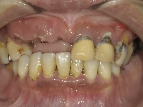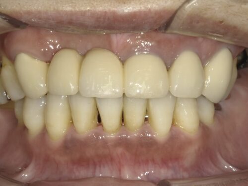 こちらの方は前歯がグラグラでかぶせ物は難しかったので、